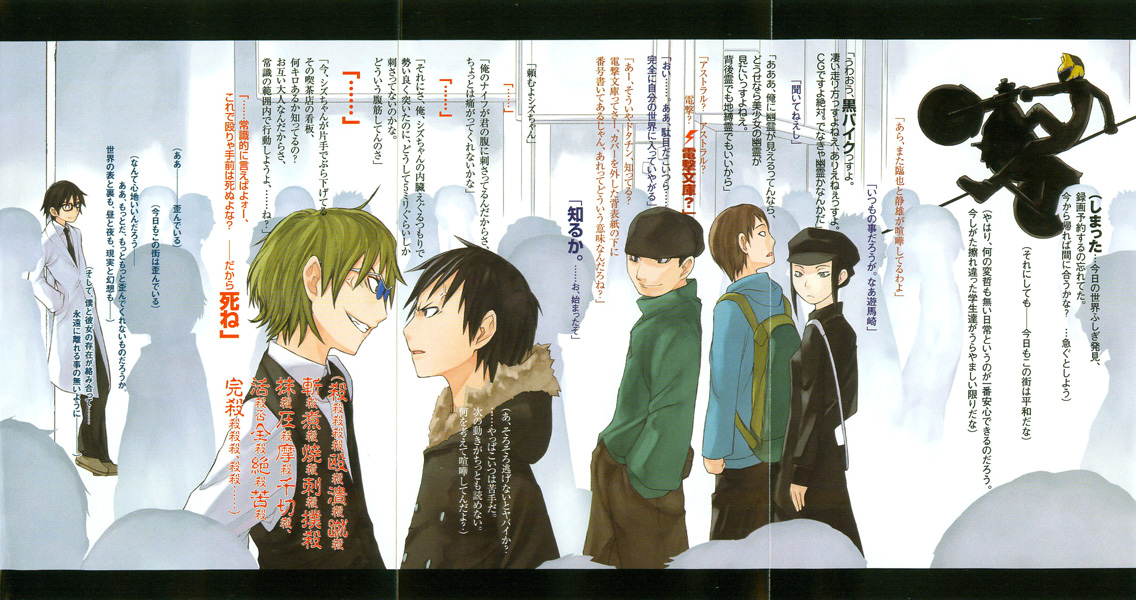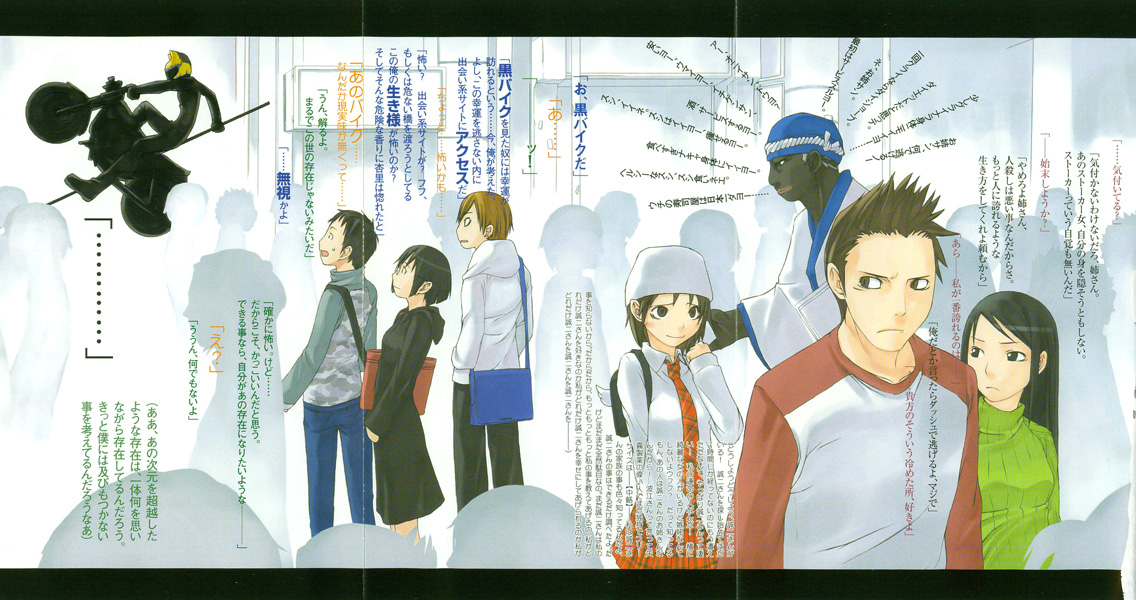„To takie ekscytujące. Tak niesamowicie ekscytujące. Po prostu fantastyczne! To miasto kryje jeszcze tyle tajemnic. Co chwila pojawia się coś nowego, a stare odchodzi w niepamięć. Dlatego właśnie nie mógłbym żyć na odludziu! Uwielbiam ludzi! Kocham ich! Ubóstwiam!”. Dzielnica Ikebukuro w Tokio jest miejscem, gdzie pojawiają się rozmaite persony: młodzieniec poszukujący niecodziennych wrażeń, wiecznie rozwścieczony chuligan, żyjąca we własnym świecie pseudoprześladowczyni, dość nietypowy broker informacji, szemrany lekarz, który żadnemu pacjentowi nie odmówi pomocy, licealista zauroczony rzeczą nie z tego świata oraz bezgłowy jeździec na czarnym jak noc motocyklu. Może ich historia nie należy do najbardziej pokrzepiających, ale pokazuje, że nawet dziwacy tacy jak oni potrafią kochać.
